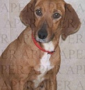 Luna e' di taglia piccola, a pelo corto, manto marroncino con macchia bianca sul petto. Porta un collare rosa con targa incisa color fuxia. Adottata da poco!