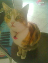Kiki e' di taglia media, pelo corto, manto tricolore bianco pezzato fulvo e grigio scuro sul capo ed il dorso. Porta un collare fuxia con medaglietta rosa a forma di cuore recante i recapiti.