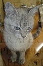 Trilly e' di taglia piccola, pelo corto, manto grigio chiaro con sfumature beige, occhi azzurri, coda tigrata grigia. Segni ident: dentino appena scheggiato. Senza collare.