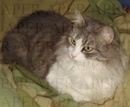 Mimmi e' di taglia medio-piccola, a pelo medio, manto color panna con macchie champagne su occhi e orecchie. Senza collare.