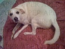 Perla e' di taglia media, a pelo corto, manto compl. bianco, orecchie beige. Senza collare. Segno ident.: occhi contornati di scuro tipo kajal nero. Scappata dal cancello di casa.