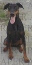 Kelly e' di tgl. grande, pelo raso, manto nero focato, coda tagliata, orecchie integre. Senza collare.
