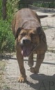 Tsunami e' di taglia piccola, pelo raso, manto marrone scuro e marrone chiaro con macchia bianca su petto e muso. Scappata dal suo recinto.