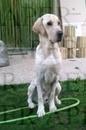 Pope e' di taglia grande, orecchie abbassate, a pelo corto, manto color miele.