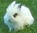 Minu' e' una coniglietta di taglia piccola, pelo corto, manto bianco uniforme con orecchie color grigio-nero in punta. Segni ident.: caratteristico profilo nero intorno agli occhi.