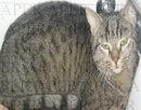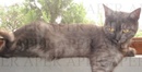 Toldy e' di taglia grande (8 kg), pelo corto, manto grigio-beige tigrato. Segni ident.: punta della coda storta poiche' rotta dalla nascita. Senza collare.