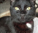 Nerina e' di taglia media, a pelo corto, manto nero con macchia bianca sul petto, occhi gialli. Senza collare.