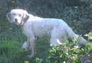 Sophie e' di taglia piccola, pelo appena rasato, manto bianco e beige. Senza collare.