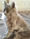 Mia e' una cucciola di pochi mesi, pelo semi-lungo e folto, manto grigio piu' chiaro e corto sul ventre, occhi color ambra. Segni ident: colore del mantello sfumato in tonalita' piu' chiara alle estremita'; ciuffi di pelo nelle orecchie. Senza collare.
