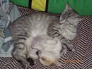 Nico e' di taglia piuttosto grande, pelo medio-lungo, manto grigio tigrato con parti rossastre e ventre piu' chiaro.