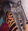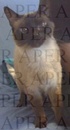 Misu e' di taglia media, pelo corto, manto color sabbia pezzato marrone sul muso e le zampe, occhi azzurri.