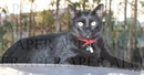 Nerino e' di taglia grande (7 kg), pelo corto, manto completamente nero, occhi gialli, senza collare. Scappato dall'ambulatorio veterinario dove era in pensione durante le vacanze.