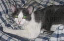 Claude e' di taglia medio-grande (5 kg.) pelo corto, manto pezzato bianco e grigio fumo con zampe bianche mentre dorso e coda sono grigi, mascherina grigia su tempie e orecchie. Senza collare. Uscito di casa e non tornato.