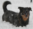 Rex e' di taglia media, pelo medio ed ispido, manto nero focato. Porta un collare rosso. Smarritosi insieme a Lapo, l'altro cane di Famiglia.