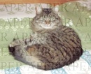 Gwendy e' di taglia media, a pelo lungo, manto grigio-marrone tigrato, macchietta bianca sotto la bocca, occhi verdi. Senza collare.