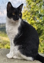 Bat e' di tgl. media, pelo corto, manto nero con due macchie bianche sul ventre, occhi gialli. Senza collare. Uscito e non tornato.
