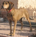Ringhio e' di taglia media, a pelo raso, manto di colore marrone con testa e gambe a chiazze bianche. Senza collare.